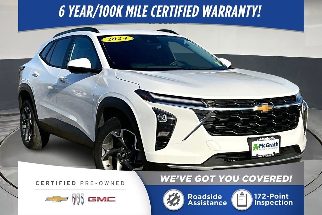 28/32 City/Highway MPG Odometer is 12023 miles below market average! CARFAX One-Owner. Clean CARFAX.Certification Program Details: Type your description here 2024 Chevrolet Trax LT 1.2L Ecotec Turbo DOHC DI w/VVT FWDWelcome to McGrath Chevy, your destination for award-winning automotive experiences. We were voted CBJ's 2024 #1 Coolest Place to Work and winner of 2024 Best of the Best Auto Dealer, Auto Service, and Fleet Dealer. We’re proud to deliver unmatched quality and service. With over 11,000 5-star Google reviews, our customers’ trust and satisfaction drive everything we do. Whether you’re buying, servicing, or building your fleet, experience why McGrath Chevy is the top choice for all your automotive needs! We’ve got everything from tough trucks to fuel-sipping commuters and adventure-ready SUVs. Our vehicles go through a rigorous inspection process, and we offer multiple layers of certification based on the vehicle's age, mileage and inspection results. Whether you’re shopping for a brand-new ride or a budget-friendly pre-owned gem, we’re here to make the process easy, fun, and stress-free.Prices may change at any time and are subject to availability and prior sale. Taxes, title, license fees, and a $180 documentation fee are not included. Payments shown are estimates; actual terms vary by buyer and credit approval. Dealer is not responsible for errors in pricing or vehicle details, information is believed accurate but not guaranteed. Photos are for illustration only confirm details with the dealer. Fuel economy ratings and driving range figures are based on EPA estimates for new vehicles, and actual mileage and range may vary. By submitting your phone number, you consent to occasional SMS or calls about our products and promotions; standard messaging rates apply. See dealer for details. Fuel economy figures are official EPA estimates and clearly labeled as such.