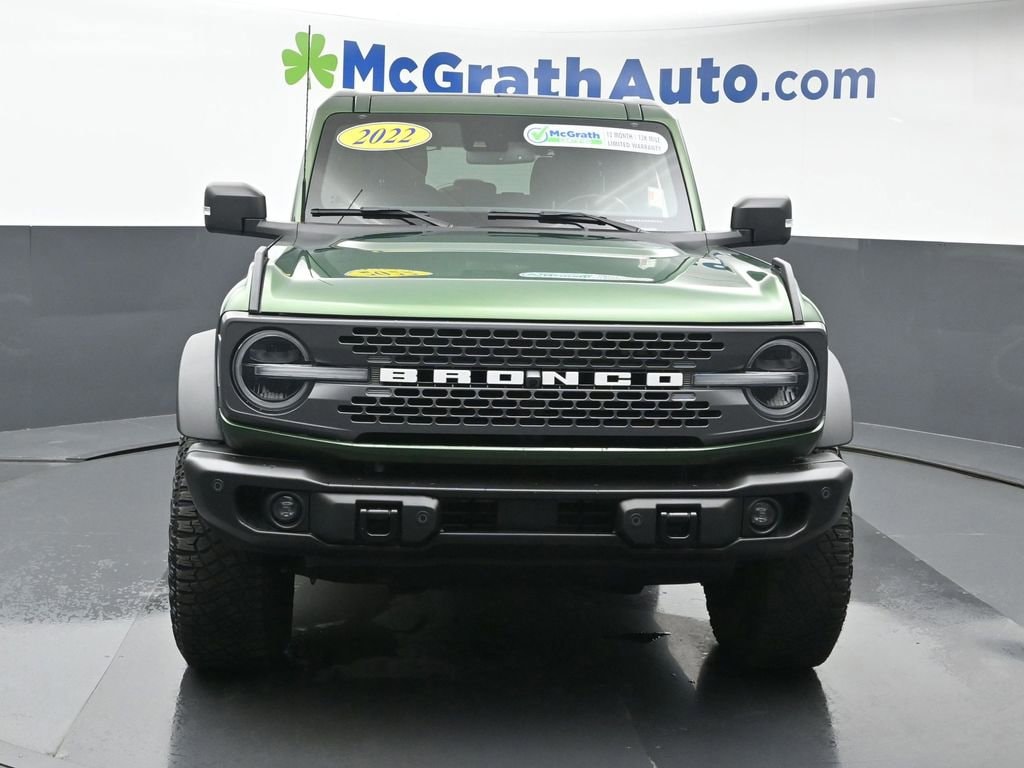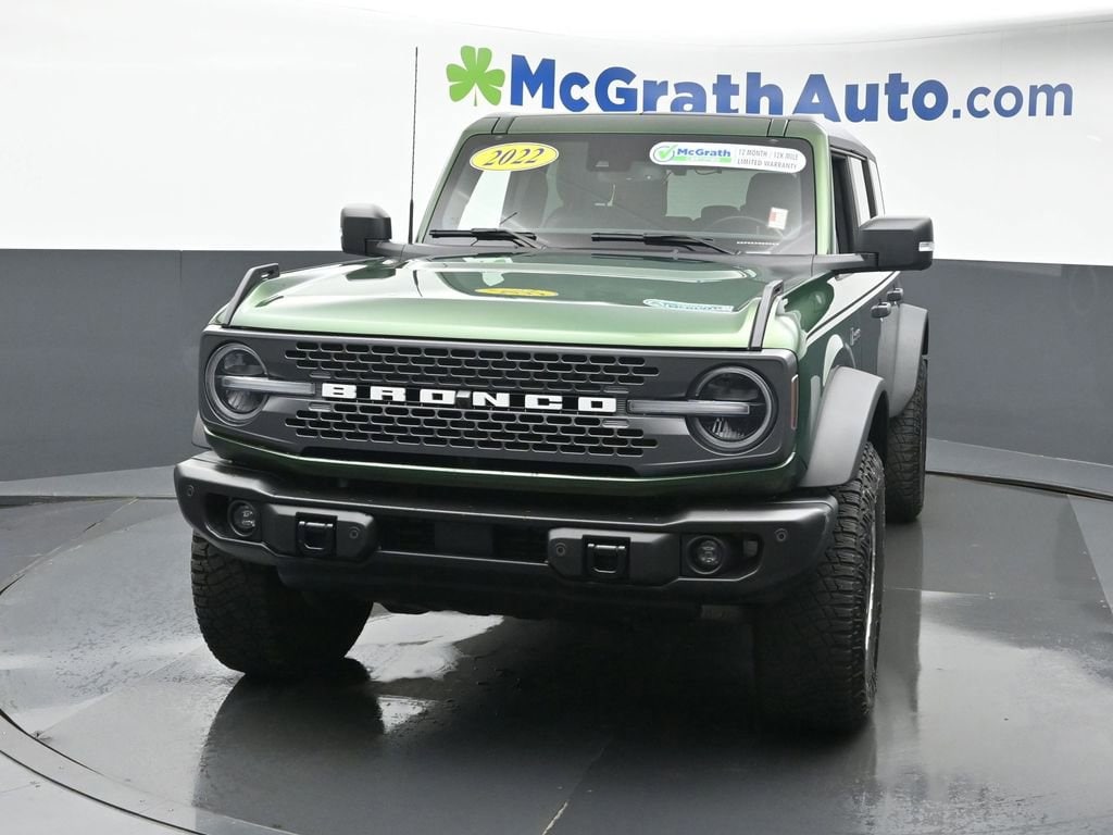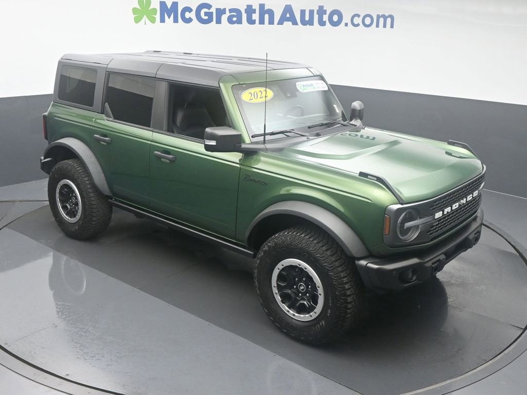Certification Program Details: McGrath Certified Benefits: * Free Vehicle History Report * 106 Point Full Vehicle Condition Inspection * Like it or Exchange it! Three Day Policy 2022 Ford Bronco Badlands 2.7L EcoBoost V6 4WDWelcome to McGrath Chevy, your destination for award-winning automotive experiences. We were voted CBJ's 2024 #1 Coolest Place to Work and winner of 2024 Best of the Best Auto Dealer, Auto Service, and Fleet Dealer. We’re proud to deliver unmatched quality and service. With over 11,000 5-star Google reviews, our customers’ trust and satisfaction drive everything we do. Whether you’re buying, servicing, or building your fleet, experience why McGrath Chevy is the top choice for all your automotive needs! We’ve got everything from tough trucks to fuel-sipping commuters and adventure-ready SUVs. Our vehicles go through a rigorous inspection process, and we offer multiple layers of certification based on the vehicle's age, mileage and inspection results. Whether you’re shopping for a brand-new ride or a budget-friendly pre-owned gem, we’re here to make the process easy, fun, and stress-free.Prices may change at any time and are subject to availability and prior sale. Taxes, title, license fees, and a $180 documentation fee are not included. Payments shown are estimates; actual terms vary by buyer and credit approval. Dealer is not responsible for errors in pricing or vehicle details, information is believed accurate but not guaranteed. Photos are for illustration only confirm details with the dealer. Fuel economy ratings and driving range figures are based on EPA estimates for new vehicles, and actual mileage and range may vary. By submitting your phone number, you consent to occasional SMS or calls about our products and promotions; standard messaging rates apply. See dealer for details. Fuel economy figures are official EPA estimates and clearly labeled as such.