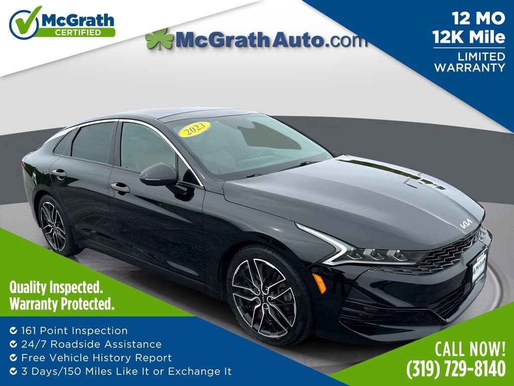 24/32 City/Highway MPGCertification Program Details: McGrath Certified Benefits: * Free Vehicle History Report * 106 Point Full Vehicle Condition Inspection * Like it or Exchange it! Three Day Policy 2023 Kia K5 GT 2.5L I4 DGI Turbocharged DOHC 16V LEV3-ULEV70 290hp FWDWe're in the customer service business first, the car business second.- H.B. McGrath. Our goal is to offer our customers great vehicles at unmatched prices, but the car business isn't just about the product, it's about the people. Welcome to McGrath, your destination for award-winning automotive excellence! Wwe were voted CBJ's 2024 #1 Coolest Place to Work and winner of 2024 Best of the Best Auto Dealer, Auto Service, and Fleet Dealer. We’re proud to deliver unmatched quality and service. With over 11,000 5-star Google reviews, our customers’ trust and satisfaction drive everything we do. Whether you’re buying, servicing, or building your fleet, experience why McGrath is the top choice for all your automotive needs! If we aren't making our customers happy, we aren't in business. It's as simple as that, and we intend to deliver on the promise: Get More with McGrath.Prices may change at any time and are subject to availability and prior sale. Taxes, title, license fees, and a $180 documentation fee are not included. Pricing reflects all applicable rebates and incentives assigned to the dealer. Example payments are estimates; actual terms vary based on credit approval. APR and payment estimates apply to qualified buyers, not all buyers qualify for advertised rates. Factory cash incentives may not be combined with promotional APR. Fuel economy ratings and driving range figures are based on EPA estimates for new vehicles, and actual mileage and range may vary. Some in-stock vehicles may include a $1,295 Clear Guard Protection package By submitting your phone number online, you consent to occasional SMS or voice calls about our products and promotions; standard messaging rates may apply. Consult dealer for offer eligibility and other details. Factory MSRP is not the final advertised/asking price of the vehicle. Fuel economy figures are official EPA estimates and clearly labeled as such.