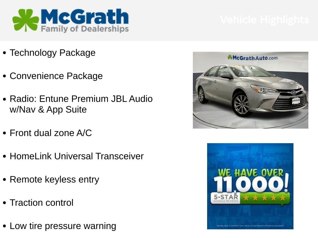 2017 Toyota Camry Hybrid XLE Certification Program Details: McGrath Smart Buy Benefits: * 3 Month / 3,000 Mile Limited Powertrain Warranty * Free Vehicle History Report * 106 Point Full Vehicle Condition Inspection